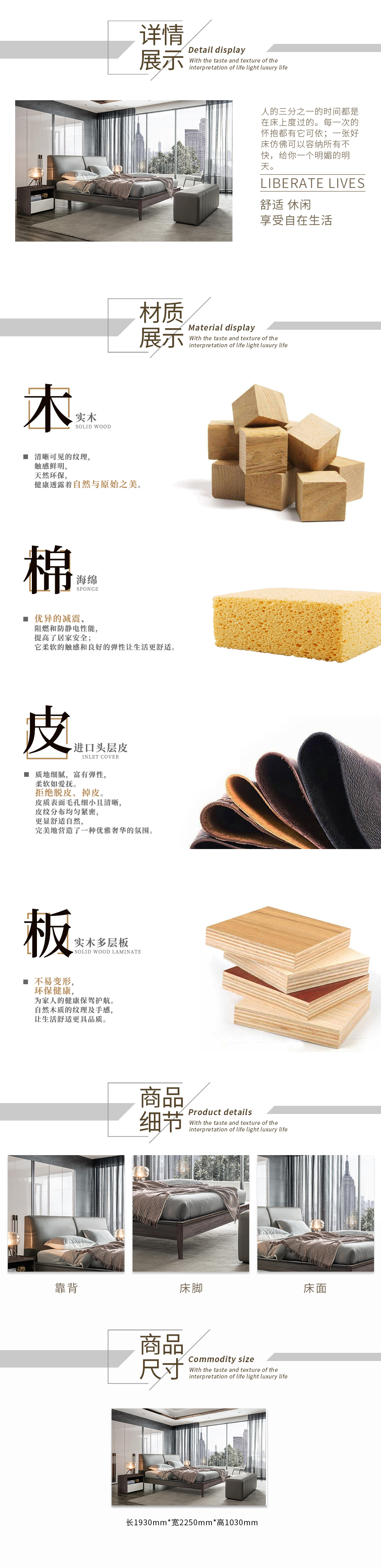 • 美式进口橡胶木+白蜡木木皮饰面+实木排骨架1.5床