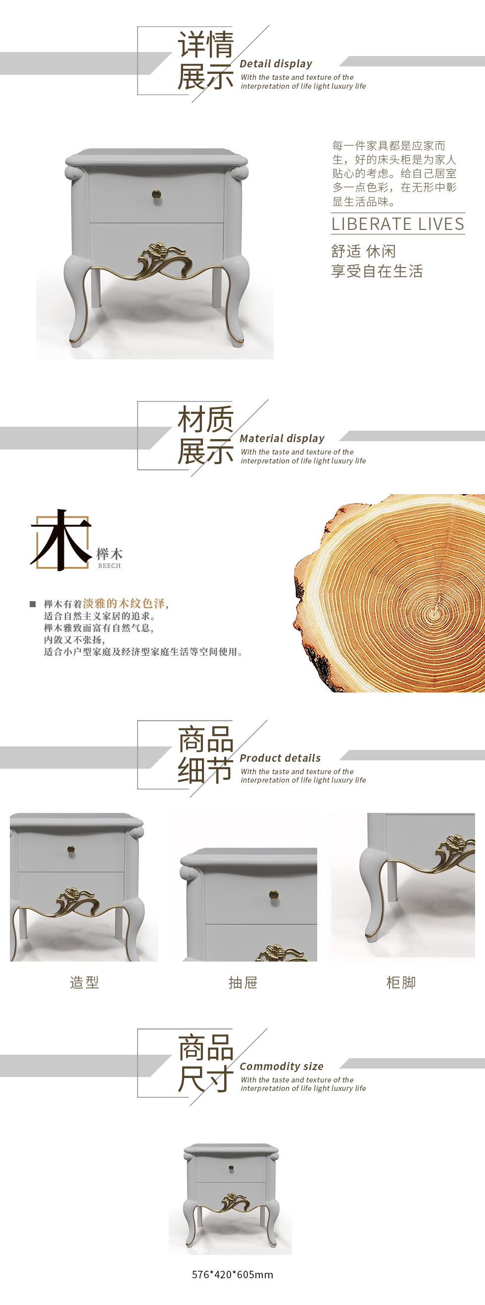 • 美式进口橡胶木+E1级实木多层+白蜡木木皮饰面床头柜