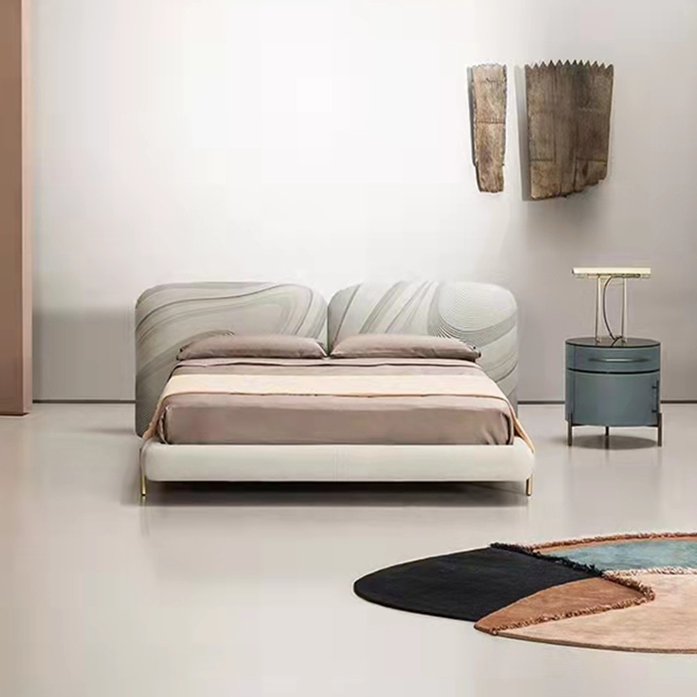 • 现代极简钢化玻璃+烟熏木皮+米白色哑光烤漆床头柜