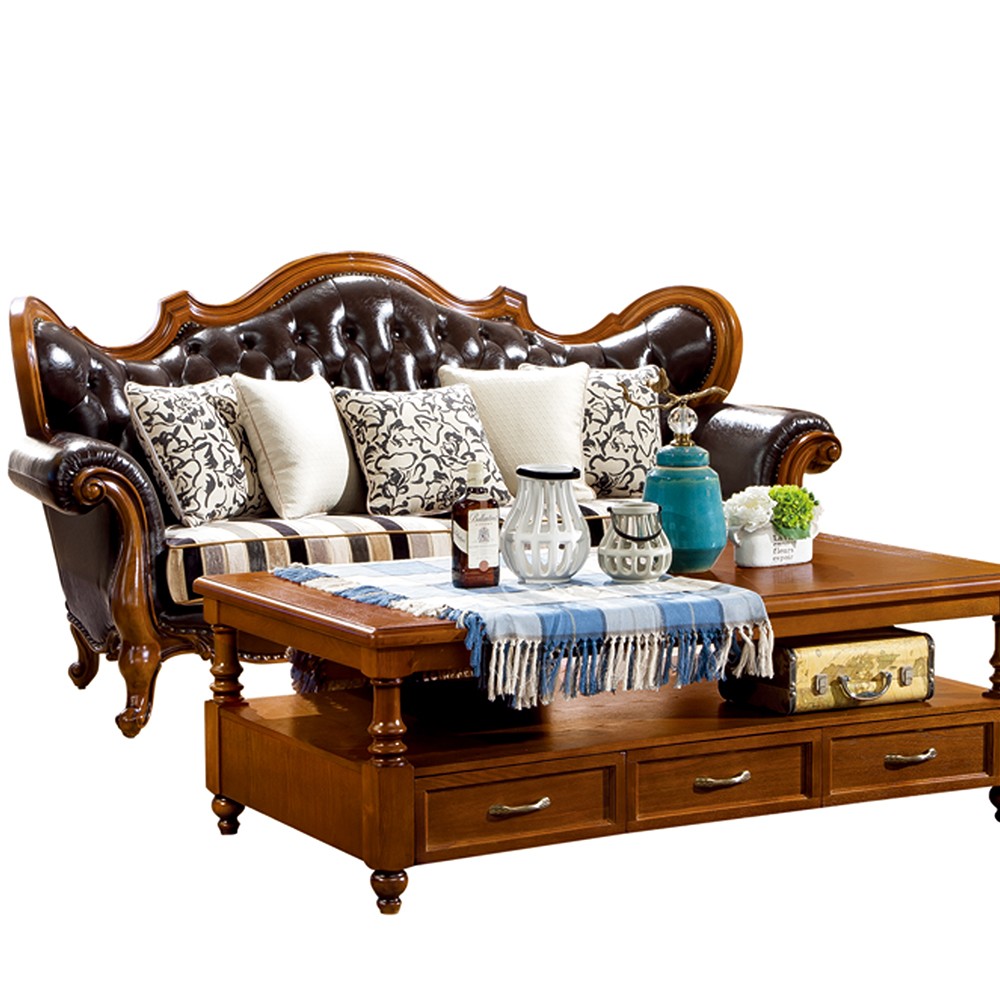• 极简烟熏木皮+大理石茶几