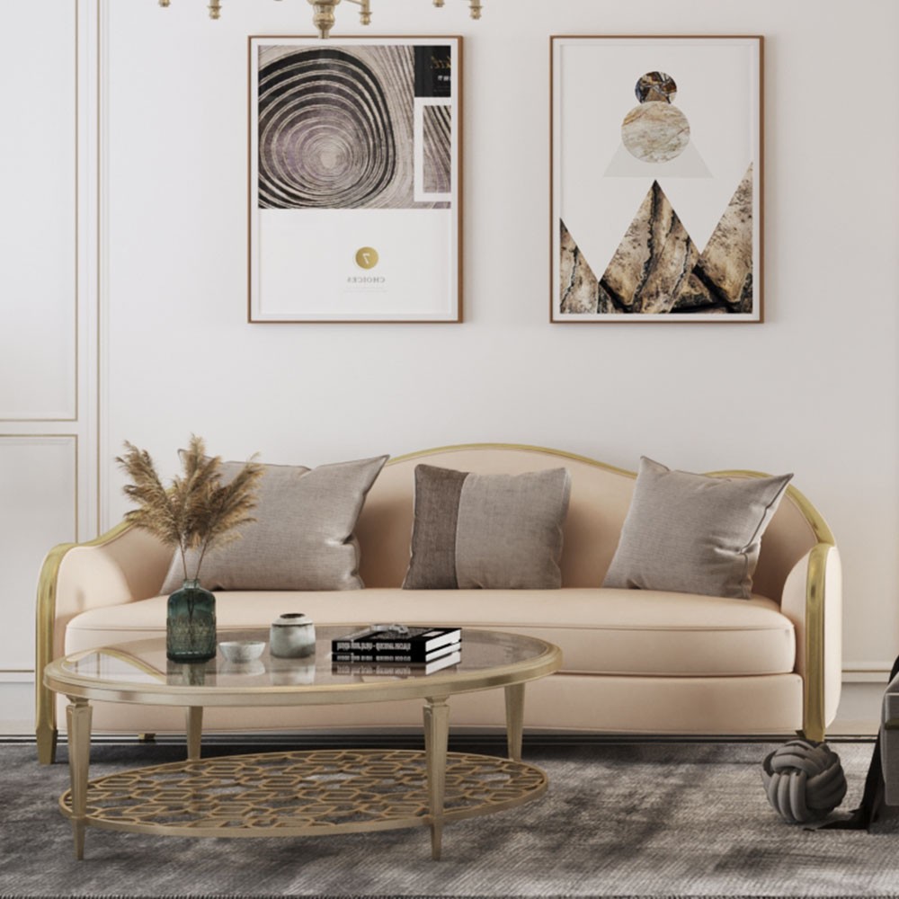 • 现代轻奢岩板台面+松木+不锈钢茶几