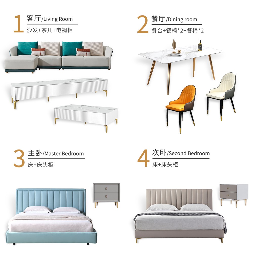 现代轻奢超纤皮+落叶松+海绵+科技布沙发 - 3400*1800*760H