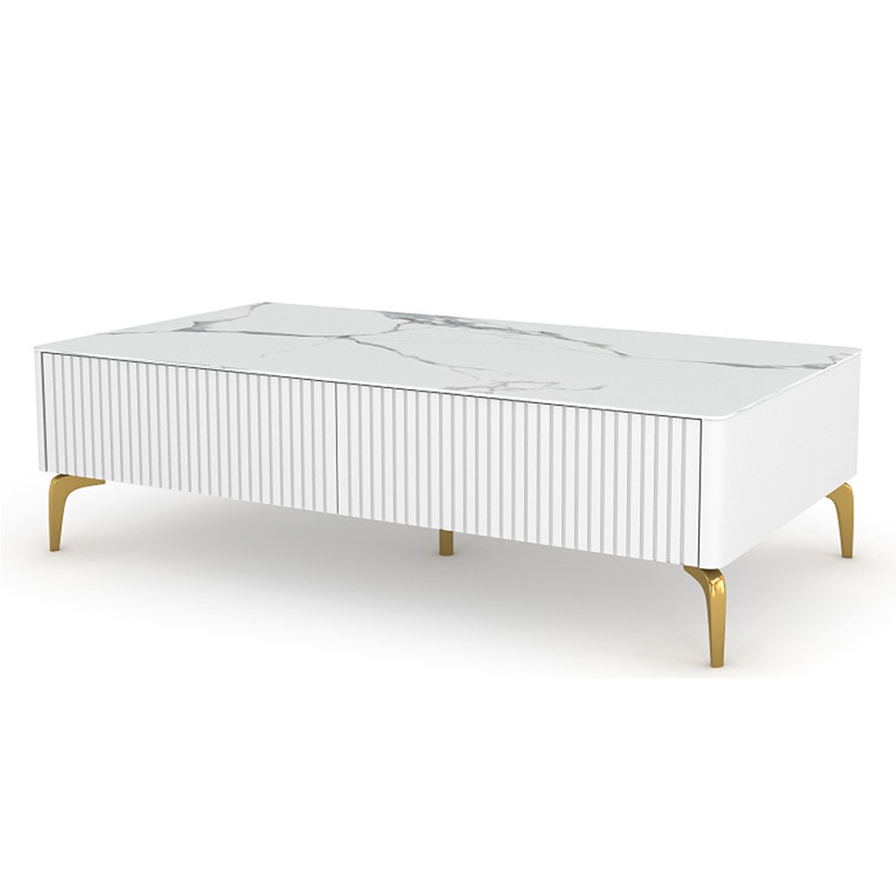 现代轻奢岩板台面+松木+不锈钢茶几 - 1300*700*400mm