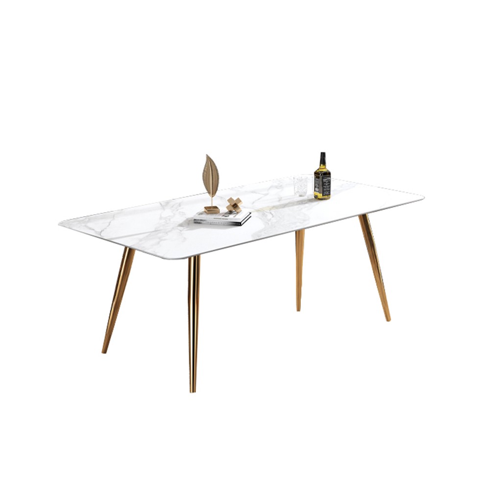 现代轻奢不锈钢拉丝镀钛金餐桌 - 1400*800*750mm